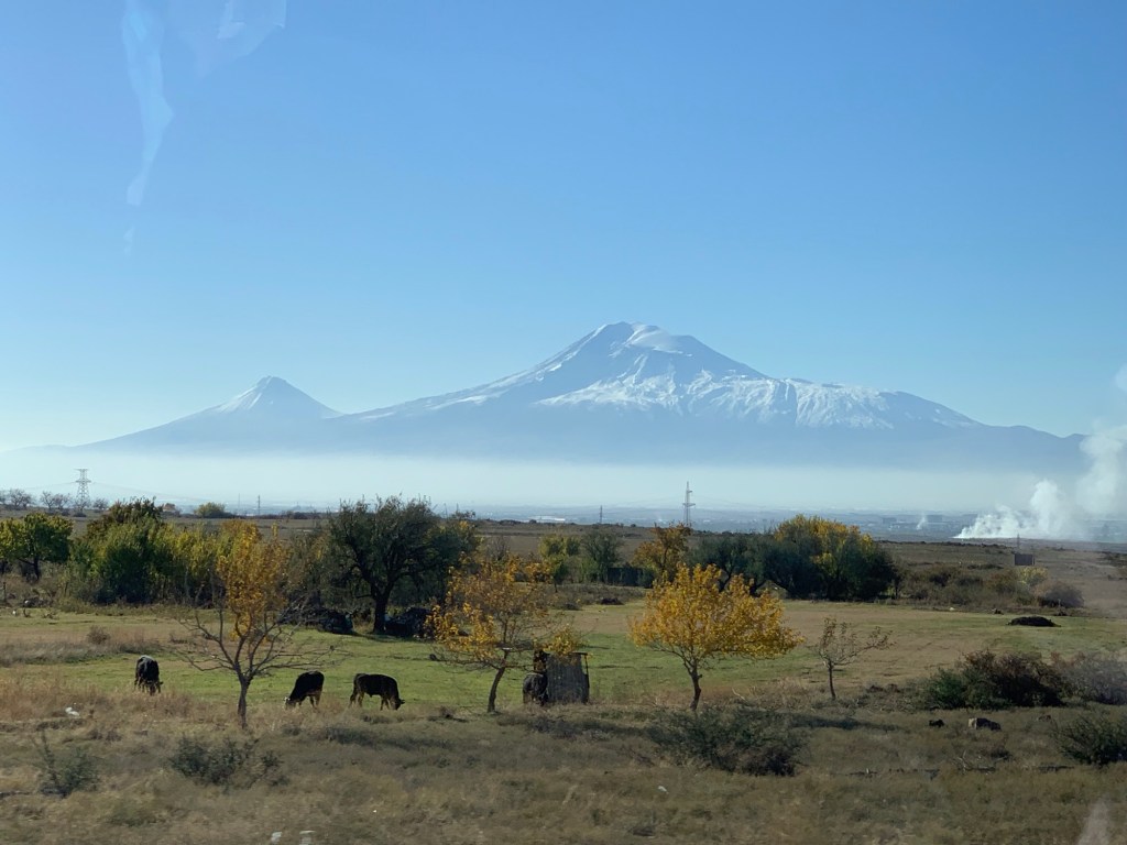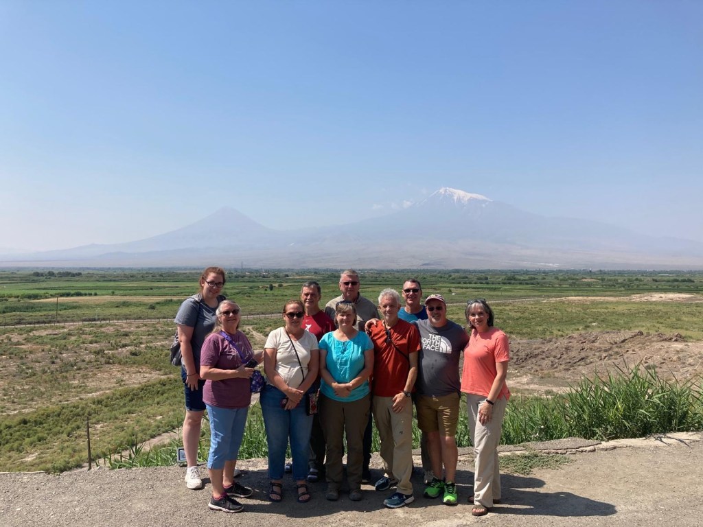 Our team with Mt Ararat in background (Mount Ararat on right, little Ararat on left)