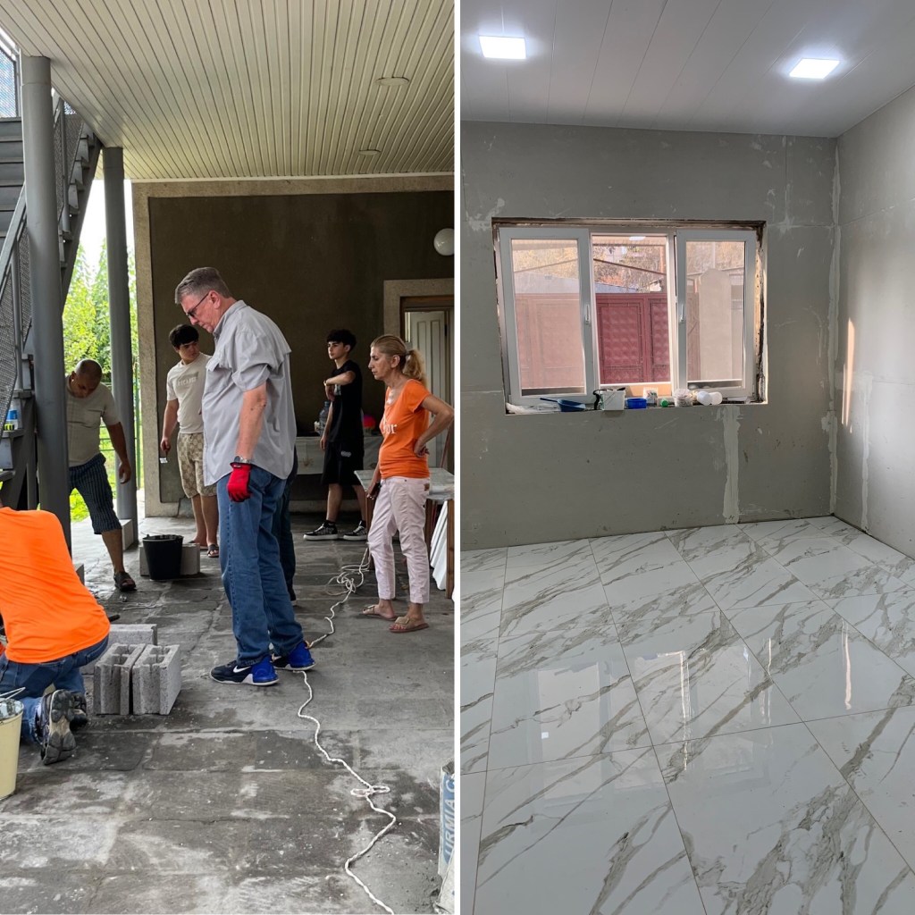 Her great-grandmother had fled east to survive the genocide. After WW1, during Soviet occupation, a portion of eastern Armenia was taken and given to Azerbaiyana (according to the history lesson given to me by my new Armenian friends). After the fall of the Soviet Union, this region – which was largely Armenian, voted to be independent and became the region of Nagorno-Karabakh. Azerbaiyana was not happy about this and wanted the region back. In September 2023, backed by Turkey, they forcefully took control of the area and within a week the Armenian population fled. Eleven months later, many of these refugees are still struggling. Our team worked to show these people that they are not forgotten. God knows their situation. He “sees” them. And He loves them. We provided hygiene kits, held 2 eye glass clinics, 3 days of women’s Bible study, and 5 days of Vacation Bible school for the kids. We also constructed a cinder block wall to expand the kitchen area at the church housing several refugee families.
