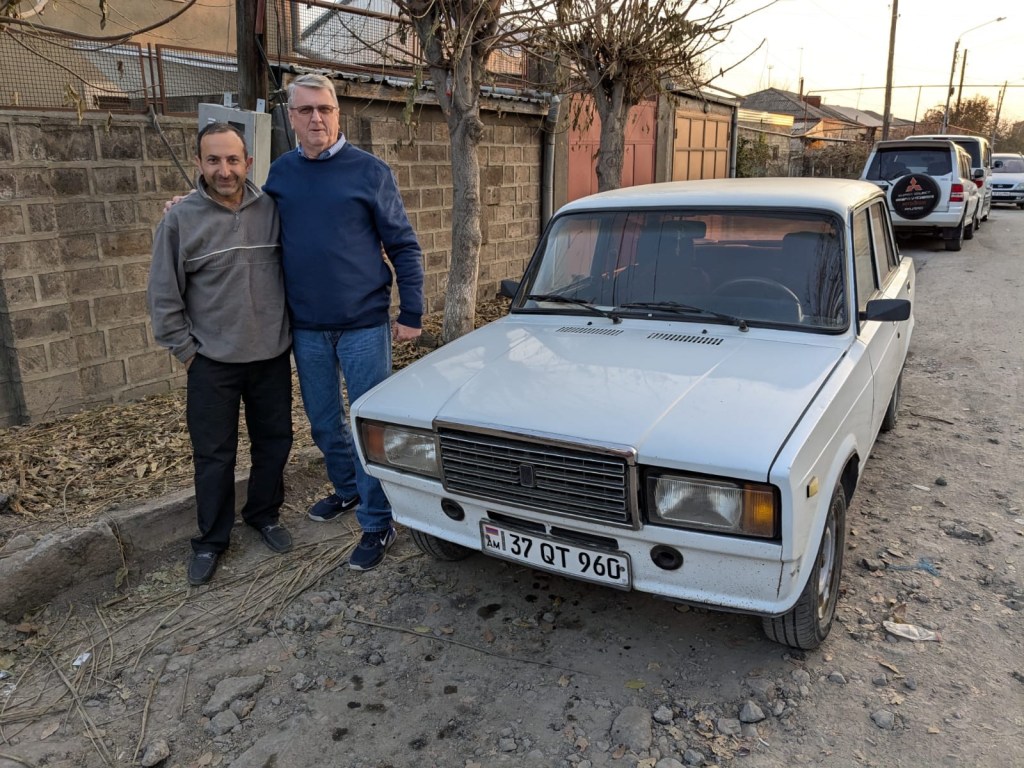 Dudley committed to work alongside Gago, observing how he worked, anticipating his needs and assisting him with multiple jobs. Through these actions, he developed a positive relationship with him. Gago shared with us apples and grapes from his garden. We shared American peanut butter. By the end of the week, Gago allowed Mike to drive his Lada and he gifted us with homemade Mulberry syrup, which is good for boosting your immune system when you have a cold.