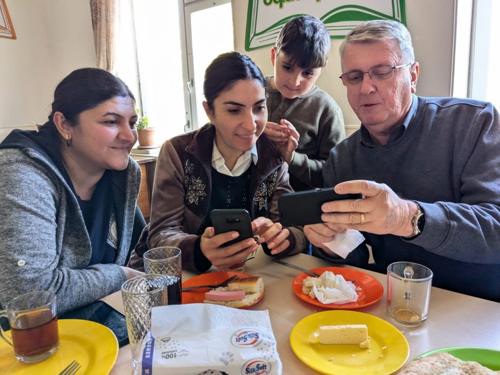 When we first arrived, Mahed seemed to barely tolerate us, like we were underfoot. We diligently followed his directions each day, trying to help him the best we could. He saw that we were there to assist, not take over. And he witnessed us investing time with his family. Each day, we sat among our Armenian friends during coffee/tea breaks and lunch, communicating through translators, Google translate and motions; showing an interest in them and their culture. His son, also named Mahed, wanted to help me with eye glass clinics. Each day he would help me set up, locate proper strengths and display selections of glasses and cases. Marina, Mahed’s wife, and Ana would also help. And I would spend time talking with them each day. Ana shared pictures of her garden, home, friends, and some of her favorite things in Nagorna-Karabakh. By the end of our time together, Mahed was interacting with us. He would sit with us at lunch and breaks, even showing us pictures of his work. He is a talented carpenter that built cabinets and furniture in Nagorna-Karabakh.