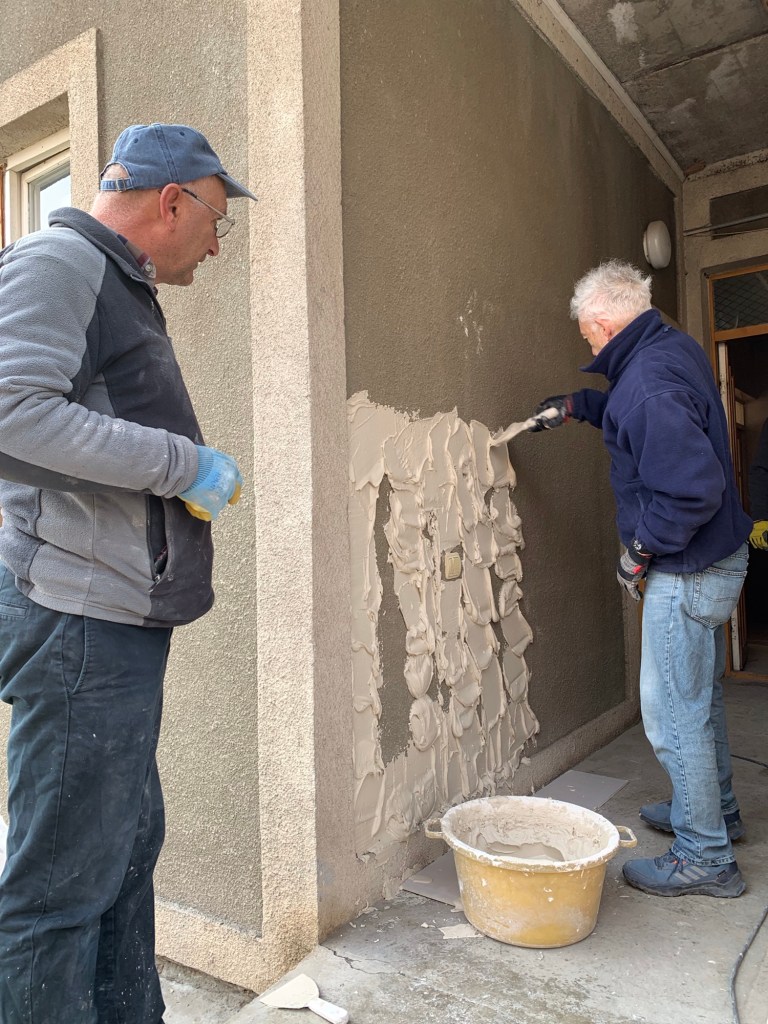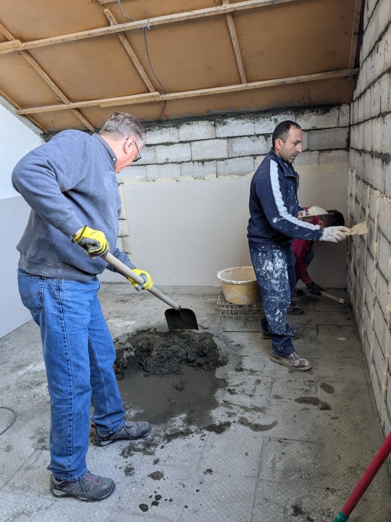 Edik is a contractor in Armenia. He was not with us everyday but the few days he was with us, he would take the time to show us how to do something, like installing Sheetrock on a cinder block wall.