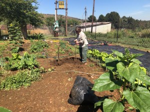 The second day, I had the opportunity to work in the vegetable garden with David, the Zimbabwean who works on the property. I enjoyed pulling weeds with Ashley and getting to know her better. We pulled weeds, prepped the beds and planted seeds for beets, corn and beans. After lunch, we gathered eggs and chased rabbits away from the garden. There are two rabbits that used to be pets but now run free. Sometimes they get in the vegetable garden and eat the plants. When our fellow teammates accused us of being mean chasing them, we responded it was “babies or bunnies.” They were eating the babies food. During the afternoon rain storm, David told us about holidays in South Africa and Zimbabwe as well as the recent political climate in Zimbabwe and the current political climate in South Africa.